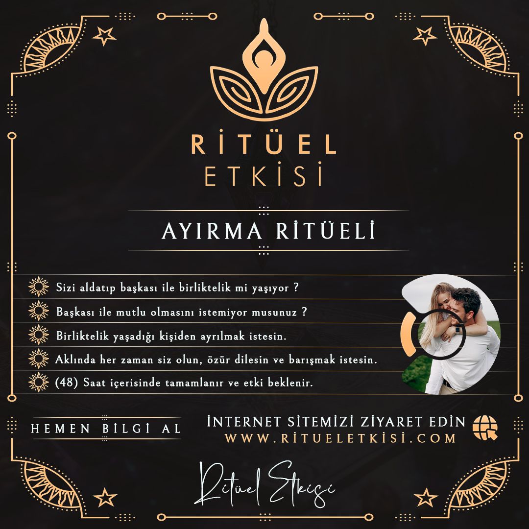 Ritüel çalışmalarım enerjisel ve astrolojik çalışmalardır, büyü ve hurafe ile kesinlikle alakası yoktur. Ritüel için gerekli olan yapılacak kişinin isim soyisim fotoğrafı ve sizin yeterlidir. İşleminizi 1 ile 2 gün içerisinde tamamladıktan sonra 1-14 gün sayımına başlıyorsunuz. İşlemlerin kesin garantisi yoktur kimse kesin sonuç garantisi veremez, veririm diyenlerede inanmayın. Tüm işlemler %80 sonuç getiriyor, müşterilerimin çoğunluğu memnun 10 kişiden 8 kişisi güzel yorumları, sonuçları ile dönüşlerini sağlıyor. Medyum veya Hoca gibi büyü işleri ile uğraşan kişiler sizlere vaatlerde bulunup kesin sonuç alırsınız diye insanlar ile oynuyorlar, dolandırıyorlar. Yalan konuşup hakkınıza girmek istemem işlem öncesi herşeyi belirtiyorum. Fiyatlarım da yüksek değildir, Ücret iadesi yoktur. İşleminiz tamamlanana kadar bekliyorsunuz tamamlandıktan sonra sizi bilgilendiriyorum. İşlem için gerekli bilgileri vermeniz yeterlidir.